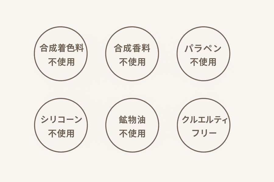 ■*遺伝子組み換え原料、パームオイル、防腐剤不使用、クルティエフリー、*Vegan friendly