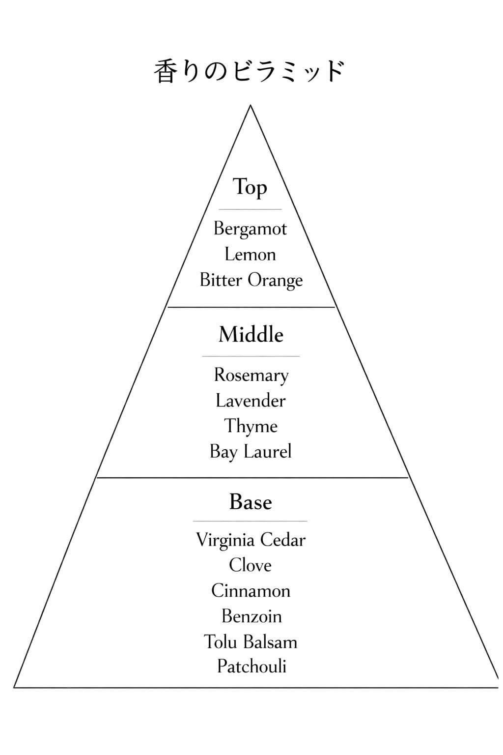 そこに、瑞々しい柑橘類、月桂樹と静謐なウッドノートを重ねることで、香りに奥行きを与えています。